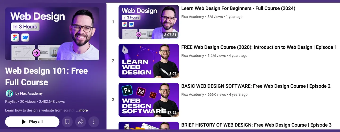 2. Free Web Design Course – Flux Academy (YouTube)