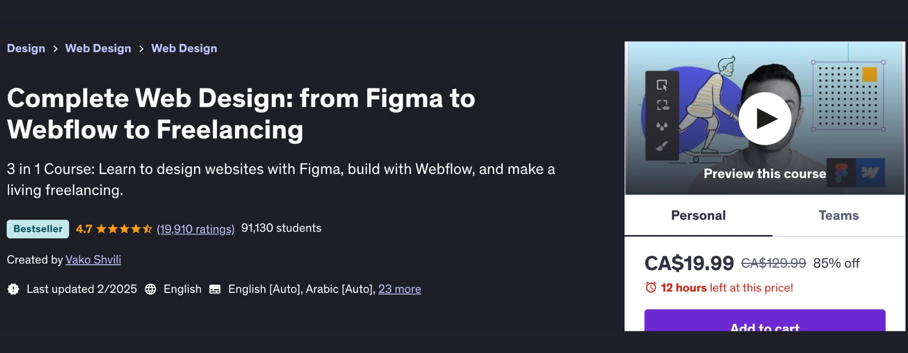 10. Complete Web Design: From Figma to Webflow to Freelancing – Vako Shvili (Udemy)
