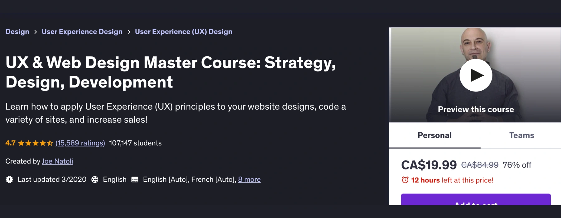 12. UX & Web Design Master Course: Strategy, Design, Development – Joe Natoli (Udemy)
