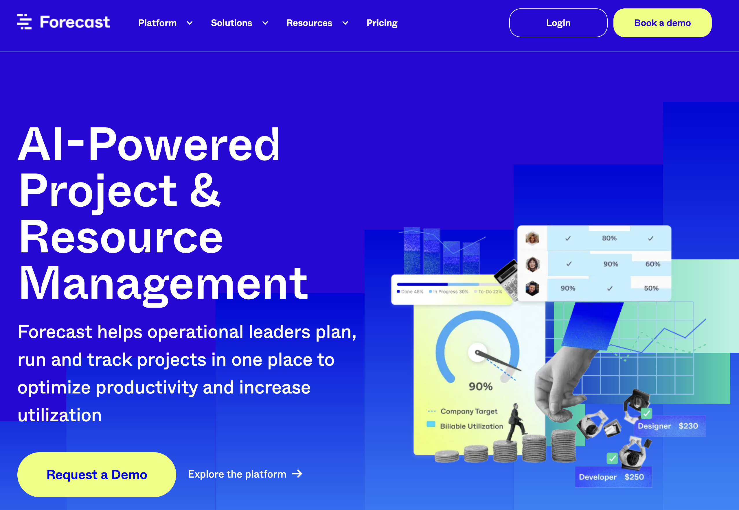 Forecast is an AI-powered project management tool tailored for SEO teams. It excels in resource allocation and financial planning, making it ideal for agencies and in-house teams managing multiple SEO projects.