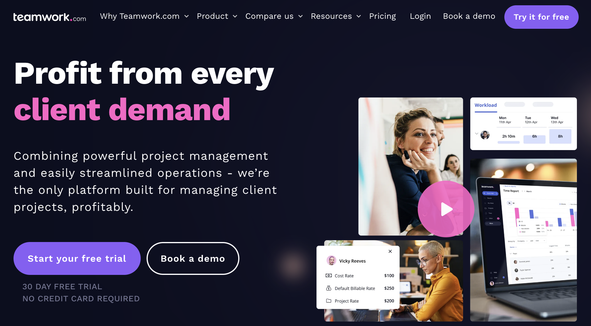 Teamwork is a solid project management tool for SEO teams, perfect for big, complex campaigns. It handles multiple client projects simultaneously and has features for time tracking, task management, and team collaboration.