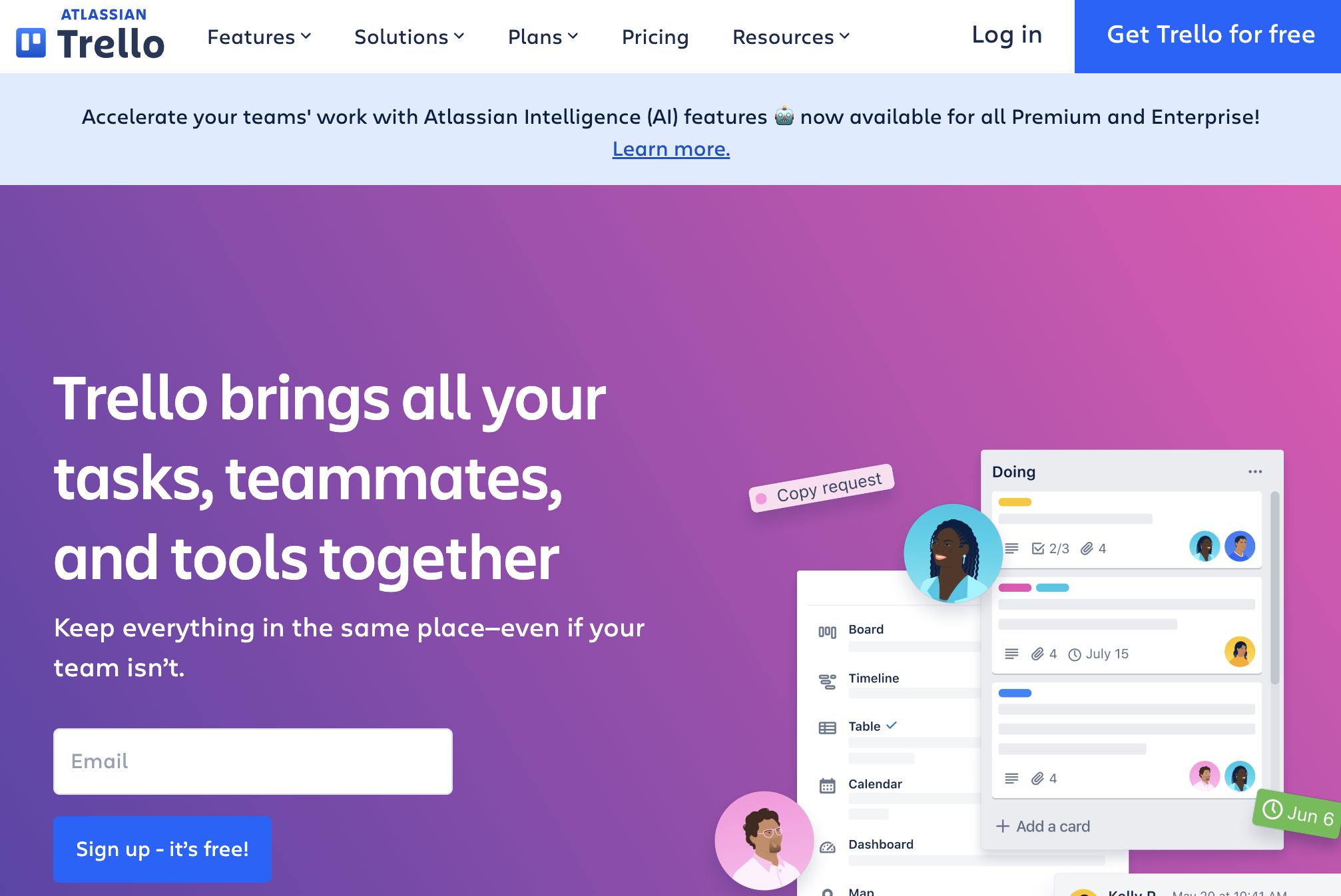 - Free basic plan: Your entire team can try Trello for free. If you like it, premium plans that add integrations, automation, and other functionality are available.