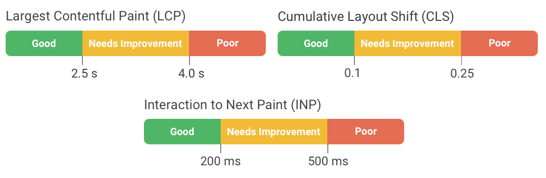 For each of these metrics there’s a maximum threshold that shouldn’t be exceeded to pass the web vitals assessment.