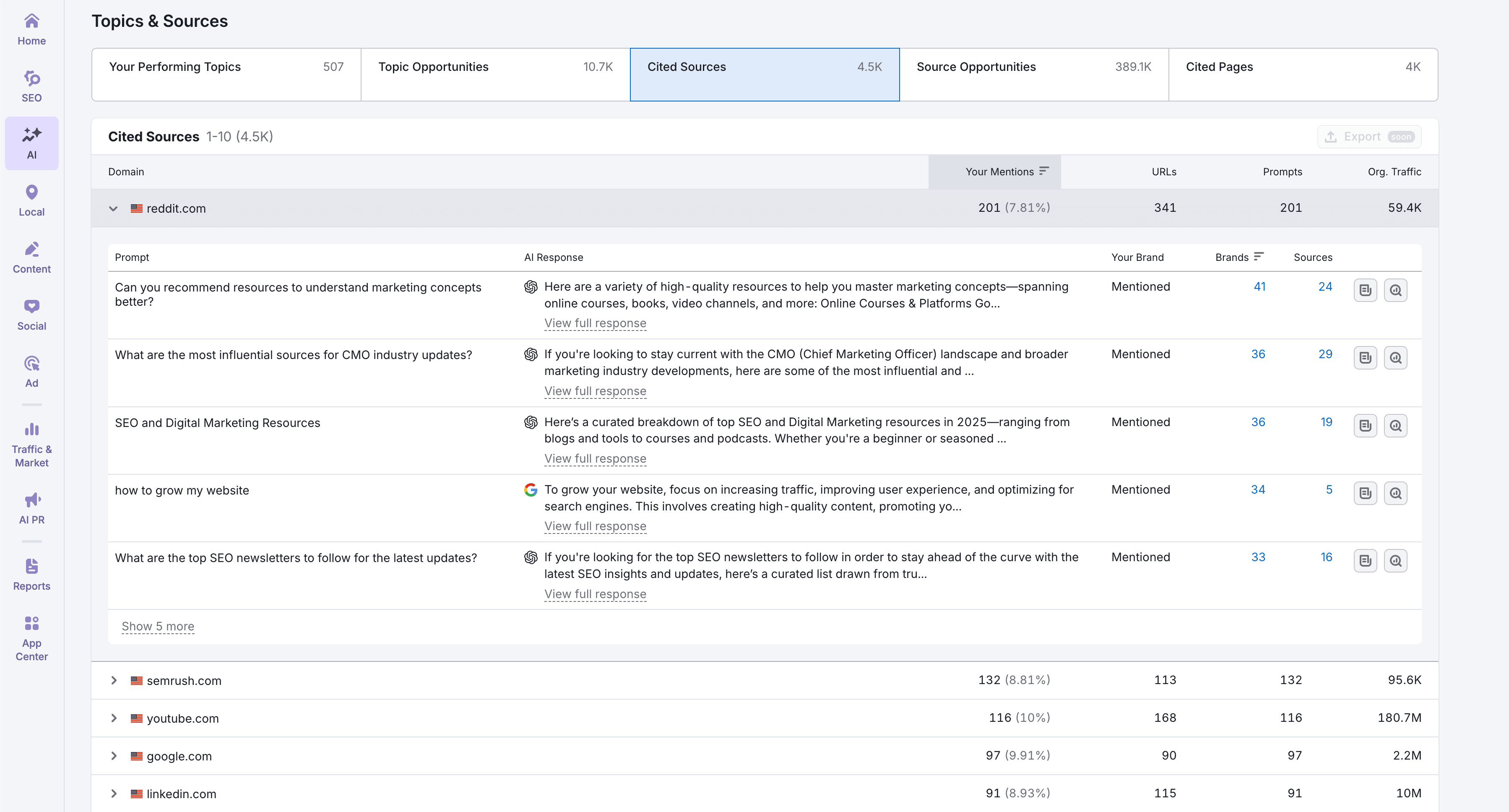 This lets you understand not just how AI tools talk about your brand, but the web signals behind those answers.