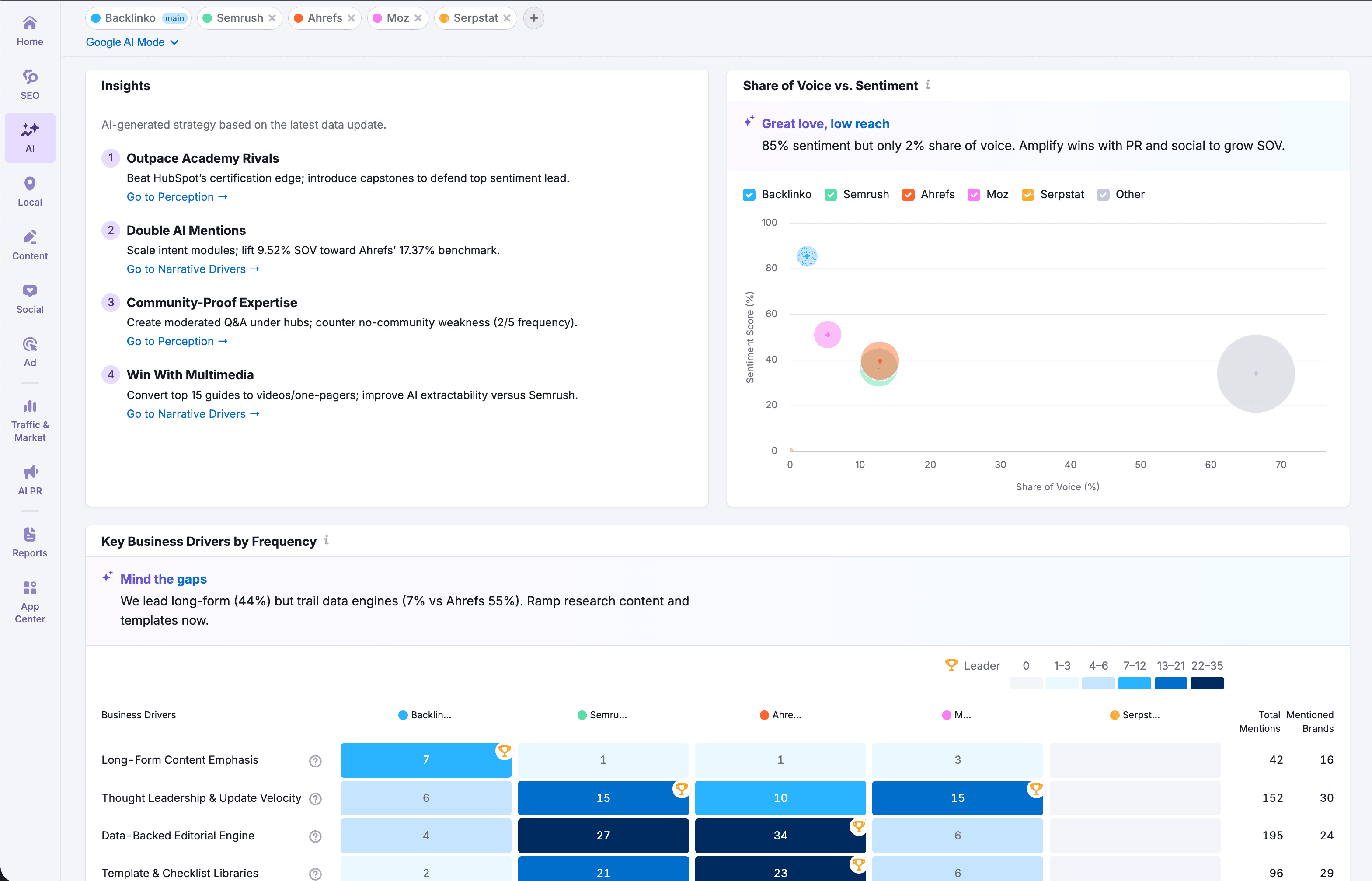 And I think it’s the right approach: if you want to understand why ChatGPT or Google AI Mode describes your brand the way it does, you can’t isolate LLM results from the web signals those models rely on.