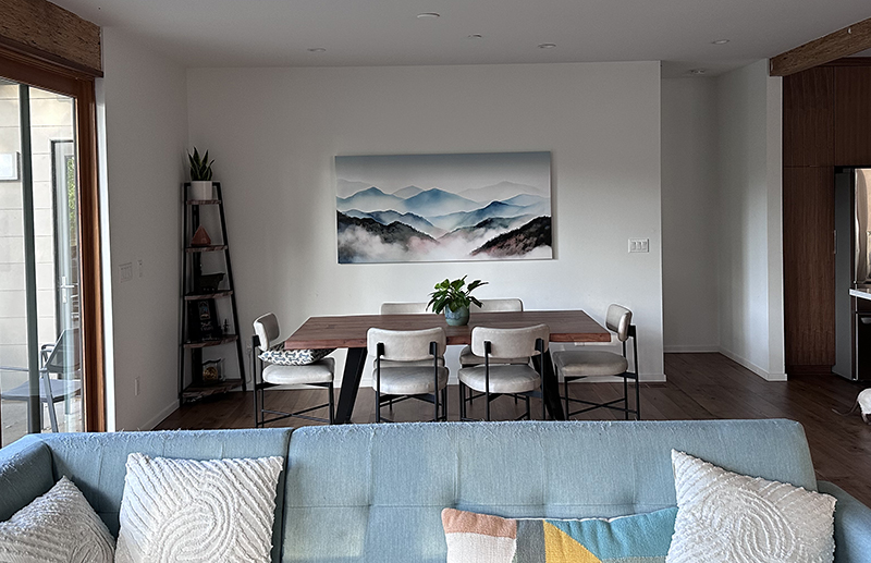AI Tools Artist Spotlight: an Interview with Matt Silverman 55Early Midjourney images were low resolution and locked to a square format, so I leaned on some older techniques to make them usable. I used tools like Synthetik’s Studio Artist to artistically up-rez the images and experiment with texture and scale. Around the same time, I had just moved into a new house and had a large empty wall in my dining room. I found a piece I liked at a gallery in San Francisco, but it was $16,000. Instead, I used Midjourney to generate “a painting of Mount Tamalpais viewed from Fairfax.” It didn’t look realistic at all, but the color palette felt right. I printed it as a six-by-three-foot canvas for a few hundred dollars, and it showed up at my door less than a week later.
