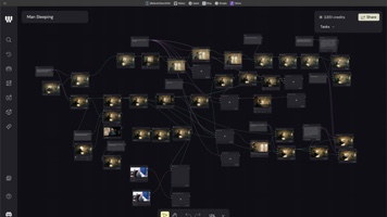 AI Tools Artist Spotlight: an Interview with Matt Silverman 65The big difference between the two is the UX. Filmspark uses a linear film-making production process from concept, to script, to casting actors/locations/props, to storyboards, to videos, to editing, to export. Weavy’s node-based UX mimics the way traditional visual effects compositing is done in programs like Nuke. A node based UX is an extremely powerful paradigm for granularly controlling every detail of a shot. But just like Nuke, it excels at working on a single shot at a time and falls apart when trying to work on multiple shots or scenes within a single setup. As node setups get complex, a single browser window becomes bogged down trying to draw multiple images and movies concurrently, eventually getting to a point where it is unusable.