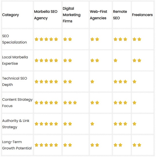 Here’s a snapshot of how Marbella SEO Agency compares: