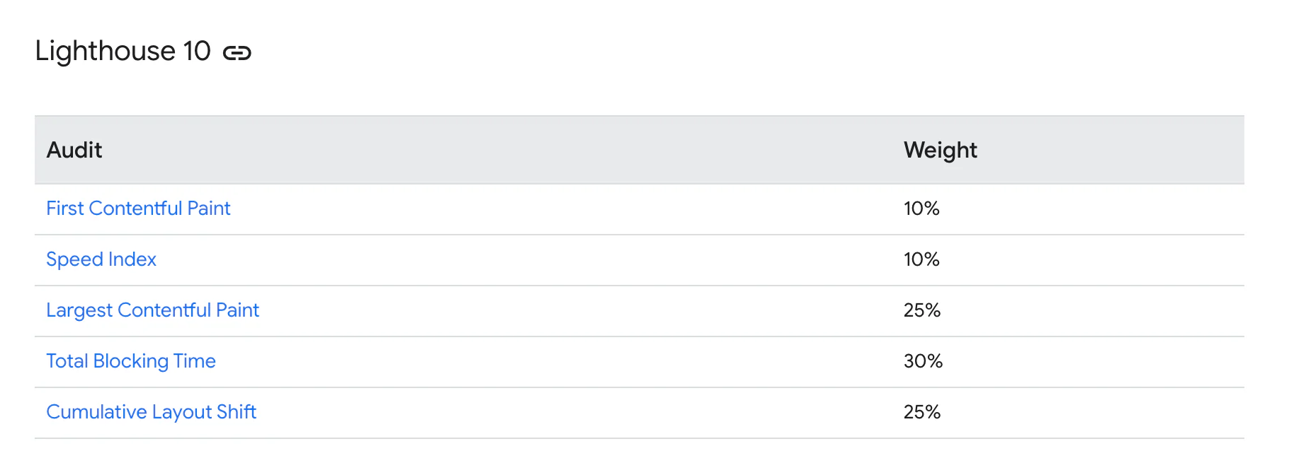 Each audit generates a raw score, which is then weighted depending on the impact they have on user experience. Interestingly, Contentful Paint is only 10% of your overall Lighthouse score. However, we believe it’s one of the most important site speed metrics (and so do many of our customers). Your Google Lighthouse score is the weighted average of all the scores.