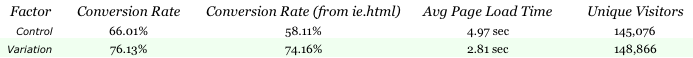 The entire Chrome landing page loads before our header appears. Worse yet, our download button doesn’t appear for 7 seconds! While this video does not reflect the experience of every IE.html visitor, nearly a quarter of our visitors wait at least this long.
