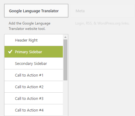 Step 8: Now it’s time setup the widget. Go to Appearance » Widgets and select the “Google Language Translator widget” and add or drag & drop to the blog’s sidebar where you want to show it.