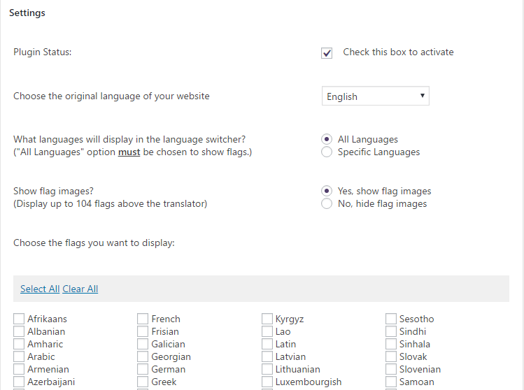 Step 4: Now go to Settings » Google Language Translator to setting up the plugin as per need.