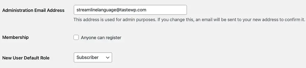 By enabling this, you’ll let anyone who visits your site create an account. In most cases, though, it’s recommended to keep this setting disabled since it’s not something that will be beneficial to most sites. Now matter what setting you choose for this box, you’ll also want to make sure that New User Default Role is set to Subscriber. This will ensure that new members are given only the most basic permissions.