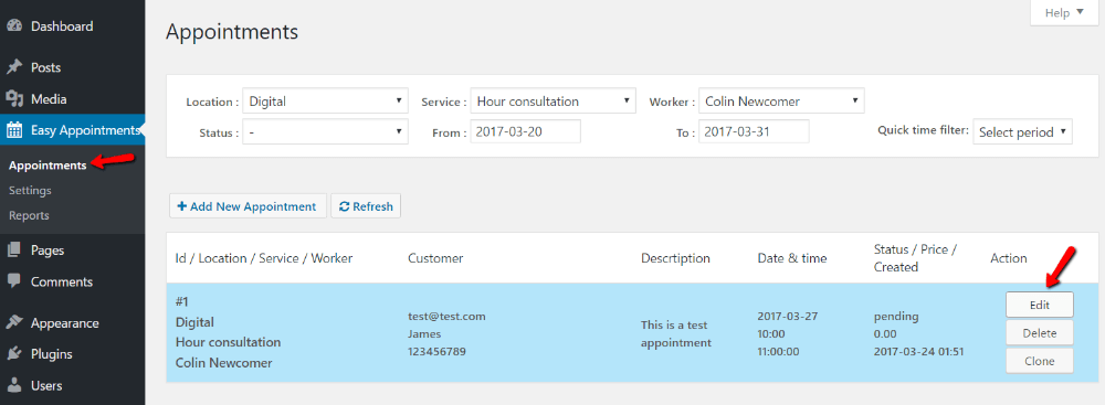 And you’ll be able to easily see all of your scheduled appointments directly inside your WordPress dashboard.