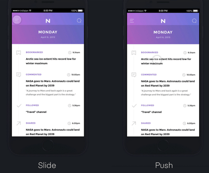 Appropriate transitions between screens can reinforce UX and lead to better long-term retention. But whichever screen transition a designer chooses, it must have a meaningful impact on the user. For example, a slide transition allows pages to appear underneath when the user might want to revert back to it. But push transitions let users knock a page out of sight using the touchscreen, giving it the appearance of being trashed. So, whatever the transition, mobile app design must be intuitive and allow page transitions to align with the general look and feel of the app experience.