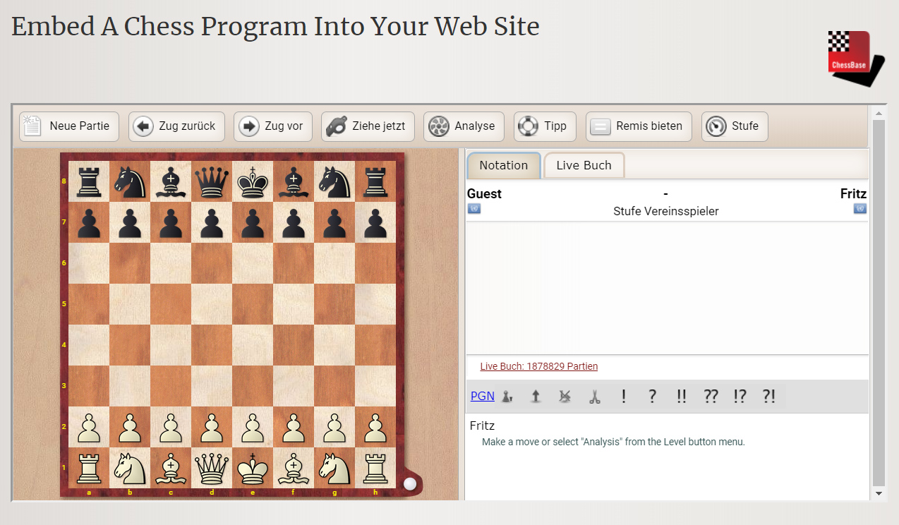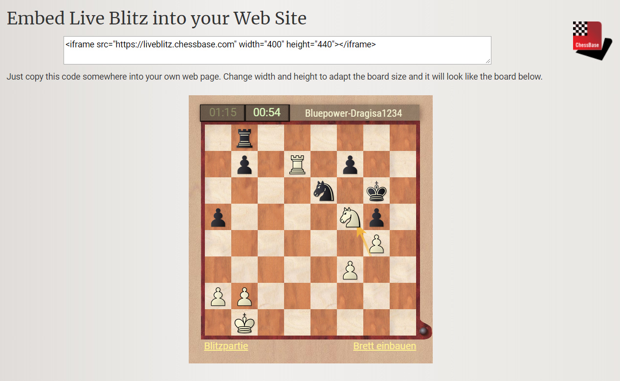 Want to offer your visitors a way to play a quick game? Now you can, and without worrying about a dearth of players. You’ll tap right into the worldwide community of ChessBase’s Playchess playing service.