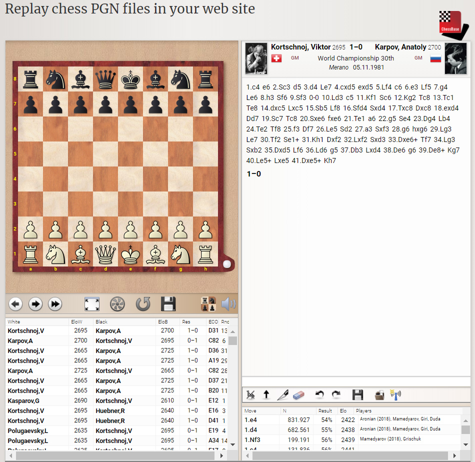 Have a game in PGN? Why not bring it to life with the same great game viewer used throughout ChessBase News?