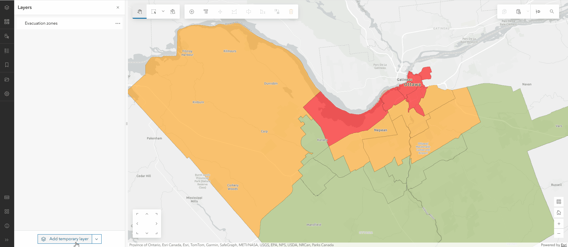 Let’s take a look at a real world example. Imagine you work in Public Safety, and you’ve been tasked with managing a public-facing map of evacuation zones during an emergency flooding event. A colleague sends you a shapefile with additional evacuation zones that need to be added to the map. With the new capabilities, you can: