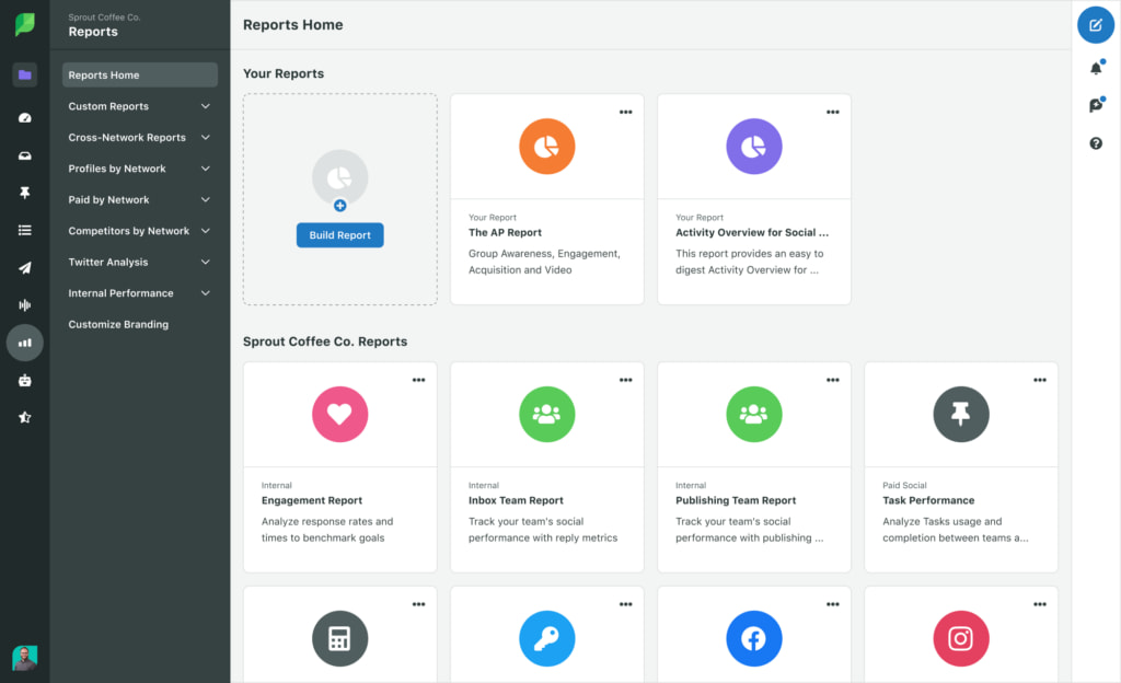 To make reporting easier and more effective, use analytics and reporting tools, like those offered in Sprout. My Reports in Sprout’s Premium Analytics helps you quickly create reports focused on the metrics stakeholders need. You can customize them to specific business units and roles, and there’s even the option to create unique views for different stakeholders.