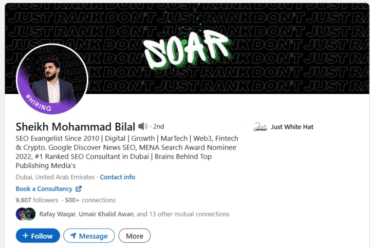 Sheikh Mohammad Bilal is number one SEO consultant in Dubai, best known as the founder of Just White Hat, Sheikh Mohammad Bilal is an experienced SEO expert in Dubai with over a decade of experience. As a Google AdWords-certified professional, his expertise spans across local and global search engines like Google, Bing, Yahoo, and Yandex. Combining technical knowledge with strategic vision, Sheikh delivers exceptional results in SEO and digital marketing, making him a trusted name in the industry. If you are Looking For Best SEO Expert in Dubai? He is an experienced SEO Expert in Dubai.