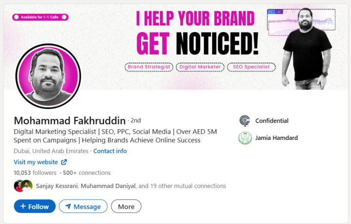 Top rated SEO Specialist in Dubai, UAE, a seasoned SEO professional, Mohammad Fakhruddin specializes in creating impactful digital marketing strategies. He is an experienced SEO consultant in Dubai and his commitment to excellence and ability to stay ahead of SEO trends have earned him a spot among the top experts in Dubai. Fakhruddin’s innovative techniques and client-focused approach consistently deliver outstanding results for businesses across various industries.