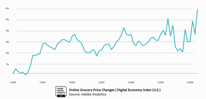 Meanwhile, the electronics category of online sales saw its first inflation in years. According to Adobe, online electronics prices have been experiencing deflation at a steady rate since 2014, but COVID-19 has led to electronics prices flattening.