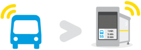 Digital bus shelters include a screen that can display real-time schedules (in minutes) or planned schedules (in time of day).